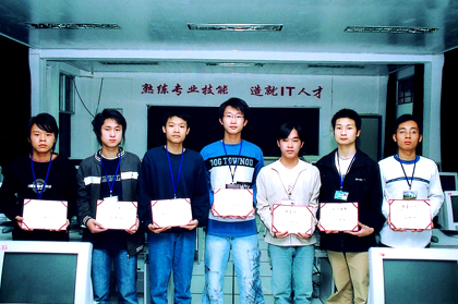 00计算机2班李程华荣获FLASH设计三等奖(图左一)