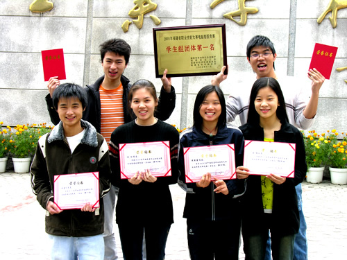 获奖合影( 选手前排左起林建川、林玲、侯燕霞、游维,后排左起余兴、程科伟)