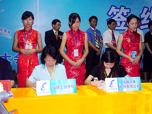 为了进一步加强今后的校企合作,陈礁副校长代表福建工业学校与中华映管电子公司在众多媒体的关注下当场签定了合作协议书,为我校今后与其他企业的合作开创了良好的局面。
