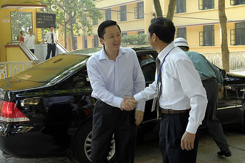 省商贸厅陈安生副厅长与我校杨运齐校长亲切握手