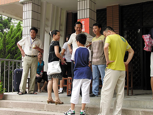 杨运齐校长同前来报到的学生及家长亲切交谈,并勉励学生勤奋学习