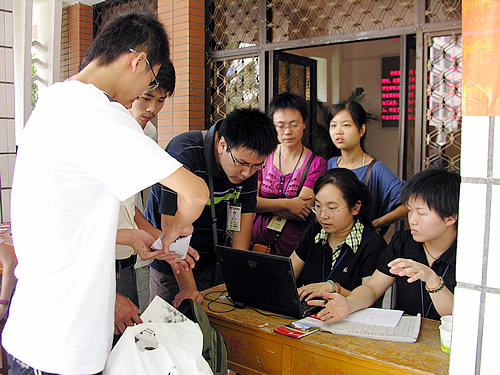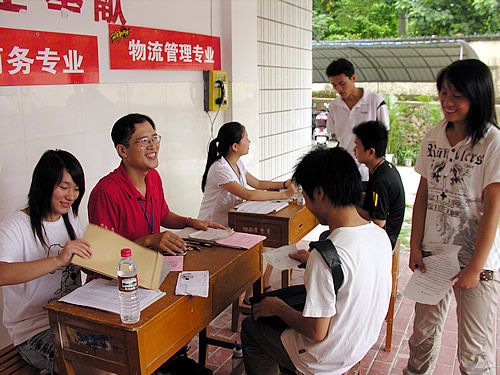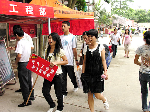 电气工程部的高年级同学热情接待前来报到的学弟学妹