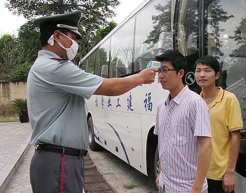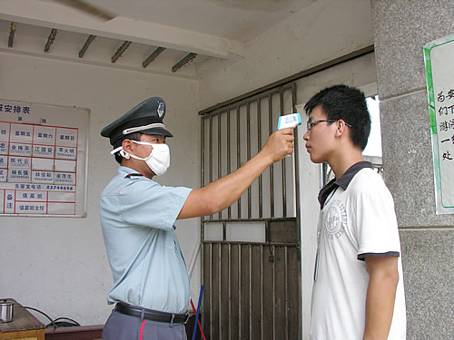 总务部门严格做好各项卫生防疫工作,尤其是食堂、学生宿舍等卫生环境复杂场所的消毒工作,校医务室制作甲型H1N1流感防控宣传资料发放至全部班级,并会同学生管理部门认真落实学生上课考勤、因病缺勤病因追查与登记上报工作。学校为门卫和校车司机配发电子体温计,教职员工、学生及外来人员进校,一律先测量体温方允许进入;为每个班级配发6把体温计,每日测量,凡发现体温在37.5℃以上,不论原因,立即由班主任护送至医院按照规范进行排查。