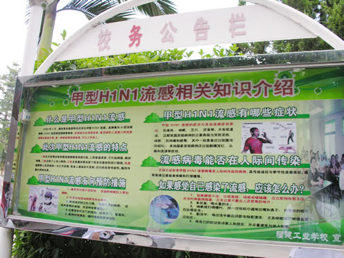 学生管理部门在开学前召开全校班主任专题会议,针对防控甲型HINI流感工作进行再布置、再动员,学生到校后,由班主任进行甲型HINI流感防控教育,并让每一位学生将近十天以来的活动情况进行描述,例如近期是否外出旅游,特别是到省外国外旅游,有否与海外回国亲友接触。掌握一手资料,实现重点“对象”、重点跟踪、重点监护;每日学生体温监控情况和学生健康情况及时由各专业教学部汇总反馈给学生科,并按规定要求上报福建省教育厅;多次组织召开全校学生大会,向学生讲授甲型H1N1流感防控知识并督促做好防控工作,及时向同学们告知流感疫情发展情况,通过班级黑板报、校园网、广播站、校电视台等教育宣传形式,广泛宣传甲型H1N1流感防控措施和知识。广大同学也积极参与甲型H1N1流感防控工作,信息专业教学部同学更是发挥动漫设计特长,绘制了通俗易懂、简洁明了的防控甲型H1N1流感宣传漫画,向大家宣传防控知识,取得了良好的效果。