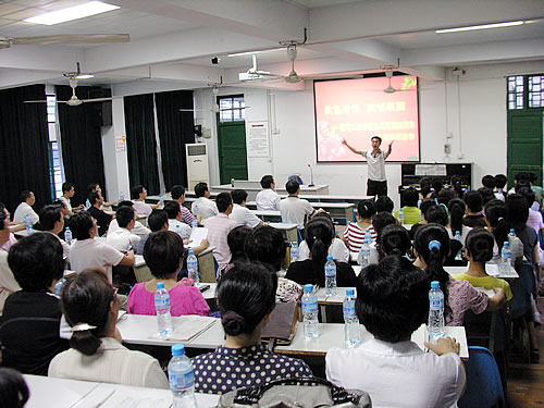 值此中华人民共和国成立60周年之际,大家深知比赛的紧张激烈和重要意义,都以饱满的热情、高涨的情绪加班加点抓紧排练,确保高质量练好歌曲,为中华人民共和国成立60周年献礼。 此次合唱活动,参赛人员在原校工会合唱人员的基础上,加上校领导和全体中层干部,组成了一支百人合唱队伍。在平时训练过程中,校领导带头,每位参赛人员都积极参加,为了能在此次的合唱比赛中取得优异成绩,老师们牺牲了大量业余时间进行训练,每周至少训练3次,时间安排在下班后两小时时间内,甚至有时候周末也抽出半天时间进行训练,但是没有一位老师抱怨过。百人队伍在音乐老师的指导下,克服诸多困难,用心加紧训练,从合唱的“门外汉”到渐入佳境,取得了令人振奋的进步。