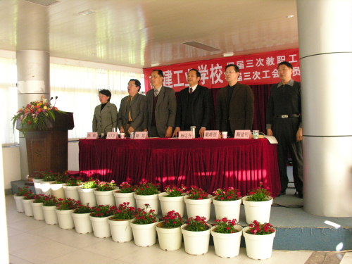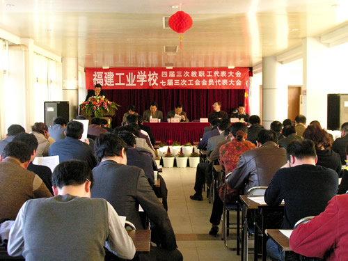 福建工业学校第四届三次教代会暨第七届三次工代会于2010年1月19日召开,出席大会的代表共有53名,其中正式代表43名,请假2名;列席代表10名,请假2名。大会由副校长兼工会主席陈天水同志主持,省教育厅机关党委陈晃副书记到会指导。