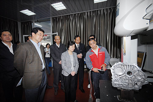 省领导观看三坐标测量仪演示