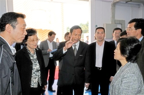 陈桦副省长、李川副省长首先了解了实训基地的基本概况,对我校依托省机械工业职教集团,“教产合作,校企一体化办学”的模式给予了充分肯定。随后,陈桦副省长、李川副省长一行参观基地生产线及数控各工种实训区。他们兴致勃勃地观看了我校与企业合作开发生产的各种产品以及学生实习实训作品,与校企合作企业负责人交谈并详细询问了产品的用途和性能,陈桦副省长、李川副省长对我校利用学校师资、设备与技术优势,与企业合作建立数控生产线、模具生产线的做法以及教学改革理念、“理实一体化”教学方法表示赞赏。调研过程中,陈桦副省长快步走到一名正在数控加工中心上进行操作的学生身边,仔细询问学生进校后参加实习实训情况,李川副省长与福州尤力精密制造有限公司代表亲切交谈,并勉励企业要进一步加强与职业学校的合作,资源共享,优势互补,设计生产更多更好的产品。