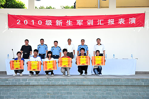 在精彩的军训成果汇报演出后,军训总指挥长宣读荣获本次会操表演、学生宿舍内务整理和个人叠被子比赛前六名名单。他们分别是:10城市轨道交通(4)班与机电班、10电控班、10动漫(1)班、10机制班、10汽车(6)班、10营销(1)班、男生2号楼606、公寓楼106、公寓楼107、男生2号楼506、男生1号楼109、男生1号楼203;10动漫(1)班的李拳、10数控(3)班的张炎、10平面设计的陈佳辉、10数控(1)班的郑威、10会计(3)班的郑梦婷、10机制班的林慧明。学校领导、部队首长为获表彰的先进集体和先进个人颁发了奖状。