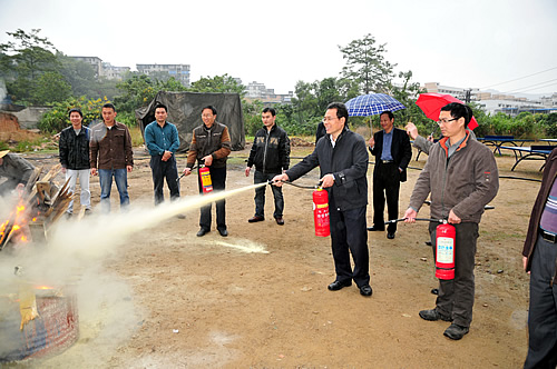 随后,杨运齐校长同各位中层以上干部分批次提起灭火器在火筒前面纷纷演练了起来。最后杨运齐校长就此次的消防安全演练进行了总结,他要求各位中层以上干部在学习演练之后还要多加琢磨,同时充分利用学校的消防安全设备,将学习到的操作方法、注意事项教会、传达给各个科室的众位老师。他再次强调预防火灾和减少火灾的危害包括了两层含义:一是要做好预防火灾的各项工作,防止发生火灾; 二是一旦发生火灾,就应当冷静、及时、有效地进行扑救,减少火灾的危害。今后,学校还将举行形式多样的师生消防安全教育和安全演练,定期组织师生进行疏散演练,以便促进全体师生掌握基本的防火、灭火常识和应急逃生技能。只有做到平时勤演练,紧急情况下才能不慌张。只有消防安全的警钟长鸣,才能真正确保校园的安全。