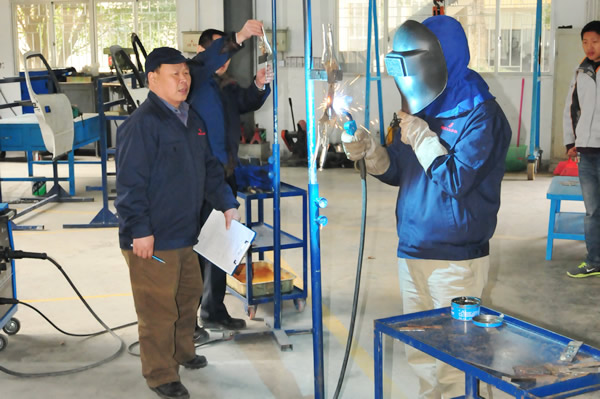 (2)“进出”结合,提升“双师型”教师队伍素质。我校一是严把“进口关”,要求新招聘的教师必须是“动口”+“动手”型教师,所有应聘人员须经笔试、面试、实操、面谈环节考核。二是高度重视在职教师“出口培训”,花大力开展校内教师业务素质提升工程。近年来,先后派出二十余位教师出国进修,选送100多名教师参加全国、全省骨干教师专业培训,每年暑假组织全校性教师集中培训,选派一线专业教师利用假期深入企业实践或调研等。另外,学校还开展了“青蓝”工程,充分发挥老教师在“动口”、“动手”方面的教学经验和教学方法的优势,通过一对一的传、帮、带,加快青年教师的成长,使“双师型”教师队伍不断传承和发展。