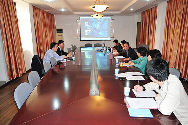 杨校长首先介绍了我校的参会人员,并代表学校对宝马中国培训学院领导的到来表示欢迎。在交流会上,首先通过观看视频短片,使培训学院领导初步了解我校的办学实力、办学条件。紧接着由汽车专业教学部江国奋主任通过PPT介绍汽车专业教学部的师资力量、办学特色(教学模式改革、教学方法改革、订单培养创新)、专业设施、2008年以来技能竞赛获奖情况、联合办学构想(专业团队、实训基地)等总体情况。