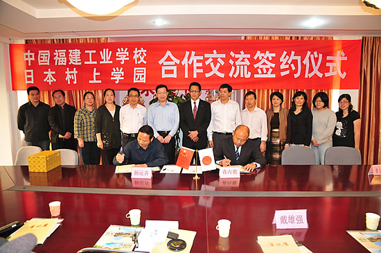 10月27日下午,日本文部科学省(日本文部科学省是日本中央政府行政机关之一,负责统筹日本国内教育、科学技术、学术、文化、及体育等事务。)的井上隆治先生偕同日本村上学园集团国际交流中心负责人森内徹先生、陈美琴小姐莅临我校,就与我校开展国际交流,进行联合办学事宜签署协议。会议在图书馆五楼会议室举行,我校杨运齐校长、戴雄强副校长、林俊标副校长及部分科室负责人出席了签约仪式。我校杨运齐校长与日本村上学园集团的森内徹先生代表双方签约。我校杨运齐校长首先代表学校全体师生向客人的远道而来表示欢迎。他介绍了学校的发展历史、专业分布、校企合作等方面的情况,希望在加强与日本村上学园交流的过程中,找到合作的契合点,逐渐拓宽合作领域,实现 “互利共赢”。并通过播放我校创建国家改革发展示范校的视频短片,向三位来宾更全面地介绍了我校的情况。
