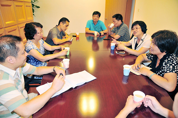 图一:福州第一技工学校张美青校长(右中)阐明此行目的