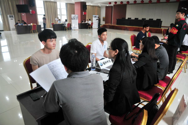 中午1:00点,宝马经销商的招聘面试于综合楼12层会议厅举行。我校12级经前期两轮选拔出的80多位同学参加了面试。现场大厅安静、有序,同学们在经销商面前,表现从容、自信,展现了我校学生的优秀素养。一些来自温州、义乌、永嘉、江西等外地的经销商也受到不少学生的青睐。此次经销商招聘的学生覆盖机电工(汽修)、服务顾问、钣金和喷漆四个岗位,招收人数超过60人。我校的办学实力、教学模式和学生优良的精神风貌、扎实的专业知识、全面的职业素养给经销商留下了深刻的印象,纷纷表示赞许,为此部分经销商现场追加聘用人数。