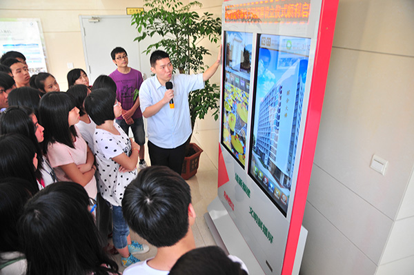 东南网智能传媒工作人员为在场的老师、同学演示了电子阅报屏的使用功能及操作