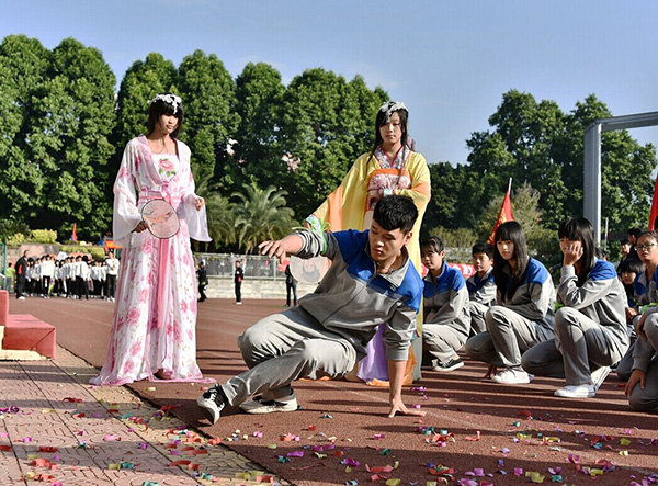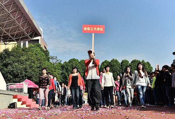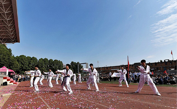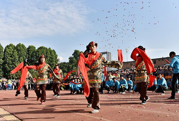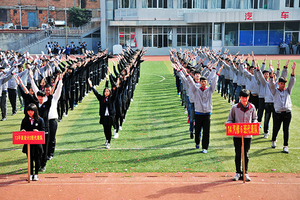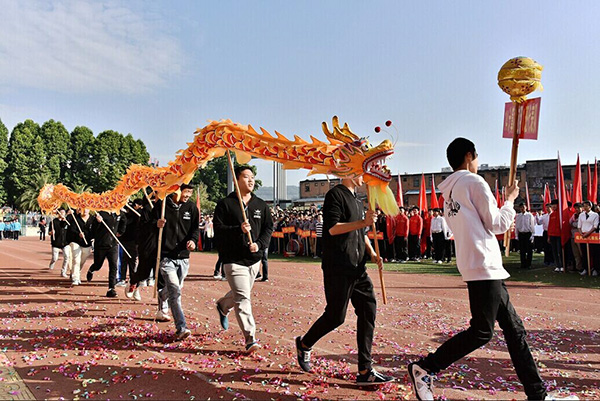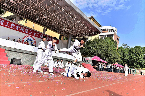 开幕式上,彩旗飘扬,在雄壮的《运动员进行曲》伴奏下,英姿飒爽的护旗手高举国旗首先入场,会徽方队、彩旗方队、教师方队紧随其后,73个班级组成的各具特色的方阵,进行了富有创意的精彩展示,有优雅的华尔兹舞、藏族民族舞、精湛的武术、跆拳道和舞龙表演……表演从不同方面展现了工校学子的青春活力与朝气蓬勃。他们步伐整齐,昂首阔步,意气风发,嘹亮的口号声响彻云霄,尽情挥洒激扬的青春活力。