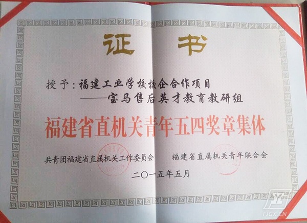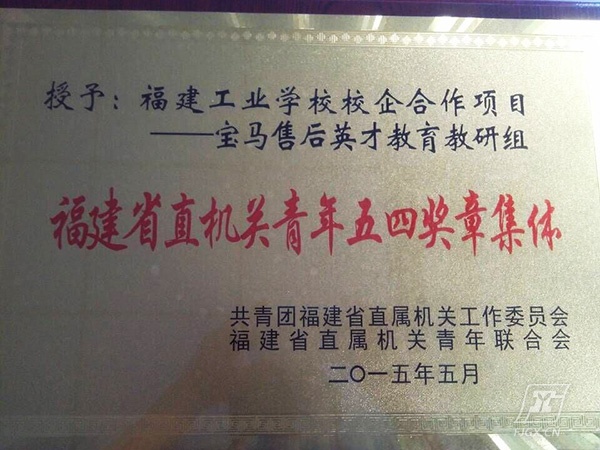热烈祝贺我校校企合作项目——宝马售后英才教育教研组被评为福建省直机关青年五四奖章集体!