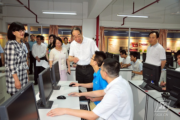尤权书记视察了我校信息专业动漫工作室及学生作品、汽车专业模拟仿真实训室、宝马集团福州(福建工业学校)BEST培训基地、机械实训基地、数控生产线,现场观看3D打印产品制作,并与现场的师生亲切交谈,尤权书记肯定了我校教育教学改革创新的成果,勉励我们培养更多高素质技术技能型人才,并强调要大力发展职业教育,服务于产业转型升级。我校人才培养、专业建设和校企合作给省市领导们留下了深刻的印象。