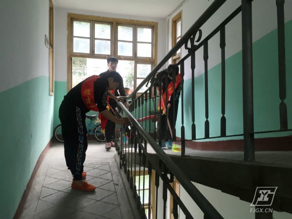 在所长的安排下,同学们分成四个小组,由干休所的工作人员带队到不同的楼房进行楼道清洁工作。同学们发扬不怕脏不怕累的精神,尽心尽力的打扫,经过一个多小时的努力,整个庭院顿时焕然一新。干休所的首长对我校志愿者的吃苦精神给予了充分的肯定。他说:“同学们在劳动过程中踏实肯干,不怕脏不怕累,给我留下了很深的印象,福建工业学校的学生确实很不错。”