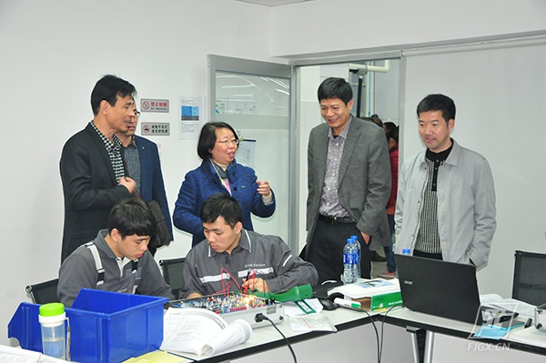 会议结束后,校领导及相关人员陪同考察团一行参观了宝马教室、宝马实训基地、机械(金山)实训基地、闽工汽车维修厂等实习实训场所。