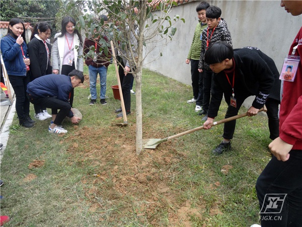 活动开始后,同学们拿着锄头、铁锹、水桶等劳动工具,分工协作,挖坑、填土、浇水,每个环节大家都一丝不苟,积极参与、密切配合,展示了高涨的劳动激情和校园绿化热情。活动现场一片热火朝天的景象,成为校园春日里又一道美丽的风景。虽然大家脚底沾满泥土,但眼前这一片新生的春意让大家满心欢喜。经过大家的辛勤劳动,一棵棵小树苗扎根沃土,同学们的喜悦之情也溢于言表。