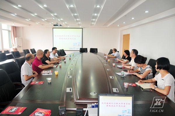 5月25日下午,福建省长汀职业中专学校陈晓玲副校长一行莅临我校参观考察校园文化建设工作,座谈会上,我校陈礁校长简要介绍了学校的改革创新发展成果并重点介绍了校企合作文化建设情况,会后,戴雄强副校长及相关部门负责人陪同陈晓玲副校长一行参观校园,实地交流校园文化建设情况。