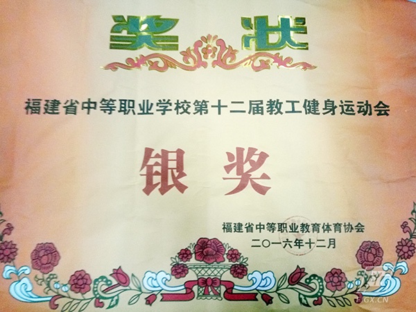 2016年12月2-4日,省中等职业学校第十二届教工健身运动会在三明林业学校举行。全省38所中职学校共960名教工运动员参加了比赛。我校派出25名运动员参加了校领导400米健身跑、教工“袋鼠跳”接力、投掷飞镖、“8”字绕跳绳、二人三足接力跑、弹射乒乓球、一分钟定点投篮、足球射小门、套圈等全部项目。经过紧张角逐,我校代表队获得团体银奖。