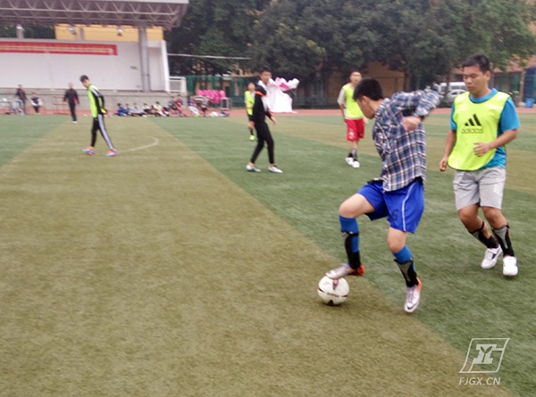 随着裁判的一声哨响,比赛开始。汽车专业代表队抢到球后率先发起进攻,来势汹汹,信息专业代表队凭借沉稳老道的经验与防守挡住了对方的阵阵进攻,双方球员争锋相对,无不透出对追逐冠军的渴望与信心!上半场,信息专业代表队在0:2的劣势下以一个极其刁钻的角度踢中一球而结束!