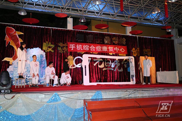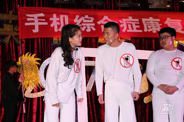 张怀苏老师指导的校话剧社带来小品《手机综合征》