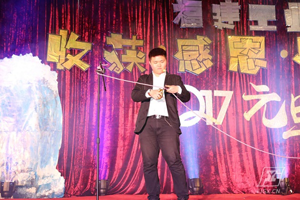 校外的魔术师和魔术社的同学带来的魔术表演一根绳子的魔术赢得观众们的阵阵掌声。