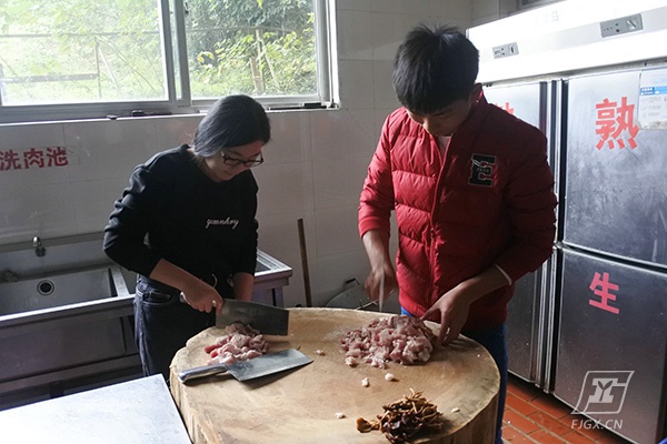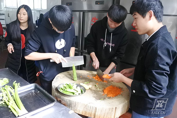 早上九点多,所有的食材都采购回来后,同学们开始分工合作,洗菜、切菜、准备佐料,各自忙得不亦乐乎。