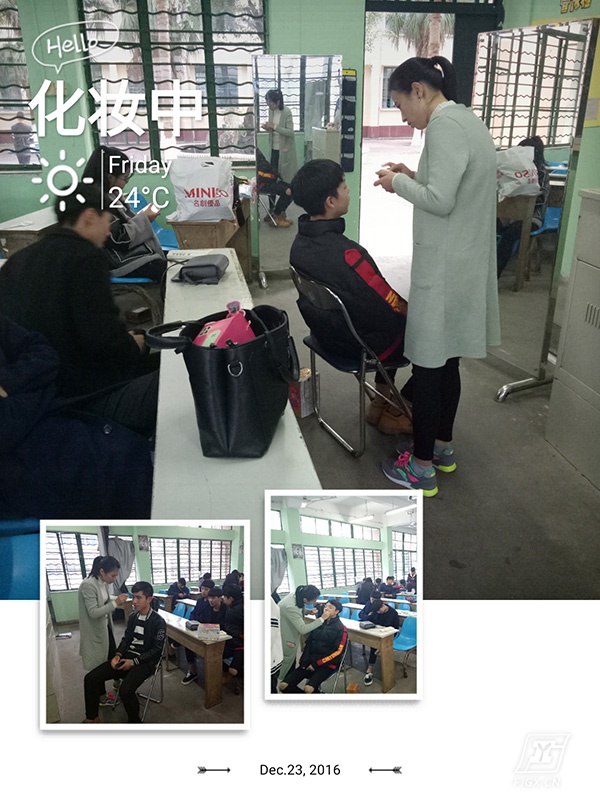 台上他们是最光鲜亮丽的,可知他们台下的工作人员和他们的艰辛。描眉画唇一丝不苟为了保证本次的成功,他们一早就来来到了化妆间。进行准备工作,只为带来最好的视觉效果。李静怡、林岩妍、阮林丹、郑倩几位老师,每一次晚会都无私地为演员们精心描绘美丽的舞台妆容。