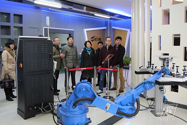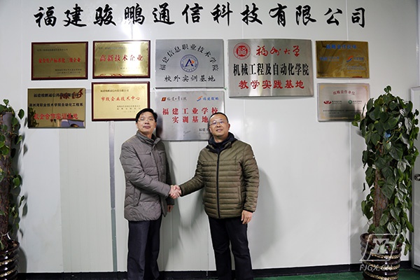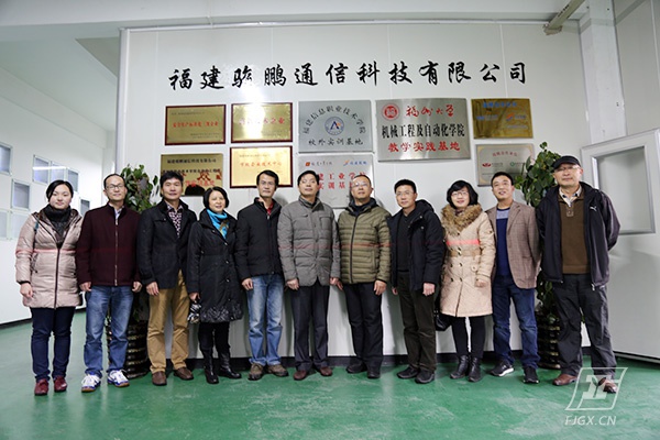 为探索中职校工业机器人应用与维护专业方向的教学新模式,进一步推进校企合作的深度融合,2017年2月24日上午,在林俊标校长的带领下,杨尊东副校长、教务科魏丽燕科长、机械专业教学部徐志英主任、李正平副主任、卢朝明老师、陈婷老师、郑瑞清老师等一行9人前往福建骏鹏通信科技有限公司(以下简称“福建骏鹏”)进行实地调研并举行校外实训基地揭牌仪式。