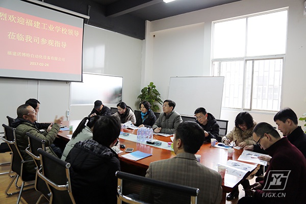 揭牌仪式结束后,双方就如何进一步深入开展校企合作进行了交流。会上,林校长简要地介绍了我的基本情况,并期待通过校、企双方的密切合作,逐步探索形成完善的校企合作运行机制,实现校企共赢。福建骏鹏领导表示将会继续为我校工业机器人专业人才培养提供强大的支撑,为教学模式转变提供有力的保障。