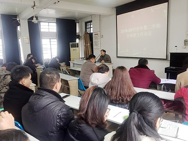 为进一步提高班主任的业务水平,总结上一学期取得的成绩、分析不足,并对本学期班主任工作进行部署,我校于2月24日13时在实验楼2楼多媒体教室召开2016-2017学年第二学期全体班主任工作会议。会议由学生科李旭东科长主持,林俊标校长、余梅英副校长及各专业部副主任、生管老师、全体班主任参加了本次会议。