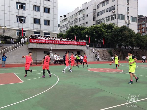 比赛尚未开始,球场上就“杀气腾腾”。两校队员相互握手,眼中都带有对比赛胜利的坚定决心。双方你来我往,不亦悦乎。福建工业学校代表队抓住对方的破绽,有计划的发起进攻,运球,停下,传球,投篮。福建工业学校率先拿到两分。场下的欢呼声一阵大过一阵。几轮攻守下来,双方比分交替上升。最后,福建工业学校以60:54的成绩取得胜利。