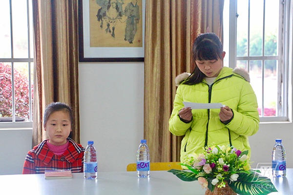 吴屯中学的朱丽梅同学代表发言,她用稚嫩的声音,讲述了自己的遭遇,并感谢来自承志班哥哥姐姐们的爱心,在未来以更加优异的成绩来服务回馈社会,将自己由接受爱心的人转变为送出爱心的人。