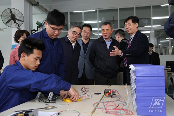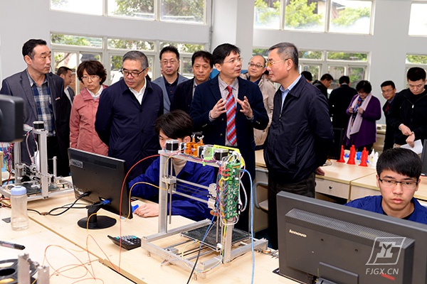 3月28日上午,民进中央常务副主席蔡达峰率调研组一行深入我校,就职业教育改革助推制造业发展进行调研。省政协副主席张帆,省教育厅副厅长陈国龙,福州市委常委、统战部长、副市长陈晔,仓山区委书记蔡福勇、福州市教育局调研员严星,我校党委书记、校长林俊标等校领导陪同调研。