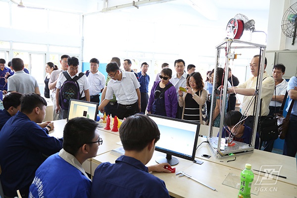 5月11日上午,山东烟台市教育局曲仁臣副局长一行37人莅临我校参观交流。我校林俊标校长、戴雄强副书记、杨尊东副校长、叶杨副校长及相关科室负责人欢迎曲副局长一行的到访,并陪同参观了我校的机械实训基地(金山基地)、生产开发中心、闽工汽车服务有限公司、宝马实训基地等实习实训场所。参观结束后,林校长主持双方在第三会议室开展座谈。会上,林校长代表学校对曲副局长一行的到来再次表示欢迎,他说山东的职业教育改革发展走在全国的前列,希望曲副局长一行能不吝赐教,给我校传经送宝。他还从学校基本情况、办学治理、社会声誉及社会影响力等几个方面详细介绍学校的建设发展情况。曲副局长对我校周到的行程安排表示感谢,对我校的改革发展创新成果给予了高度评价,他说福建工业学校是首批国家中职改革发展示范校,是福建省内中职教育的排头兵,此次慕名而来交流学习,受益匪浅,尤其是学校在校企合作方面的经验和做法让令人称道。会上,双方还就校企合作、师资队伍建设、教师下企业实践、聘请企业兼职教师及招生就业等方面的工作进行深入交流。