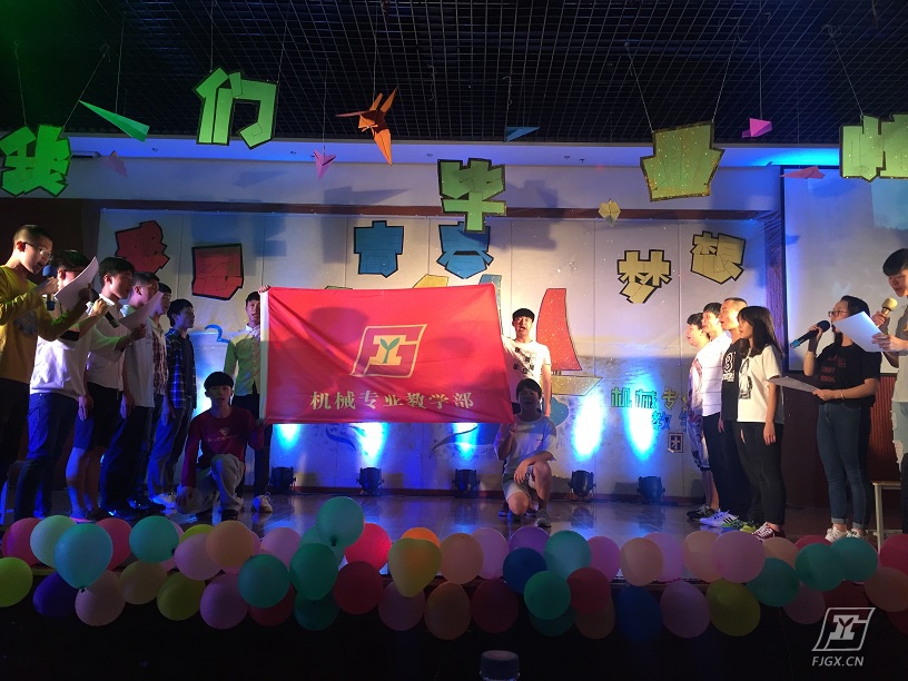 毕业晚会是机械专业教学部整个毕业季系列活动的最后一个活动。整场晚会的感情基调大致可以分为两个部分,第一部分的节目表现和回顾了机械同学的繁忙而和谐的生活,第二部分的节目深情催泪,表达了毕业生们对母校、恩师和同学们的不舍与留恋,对未来的美好祝愿。
