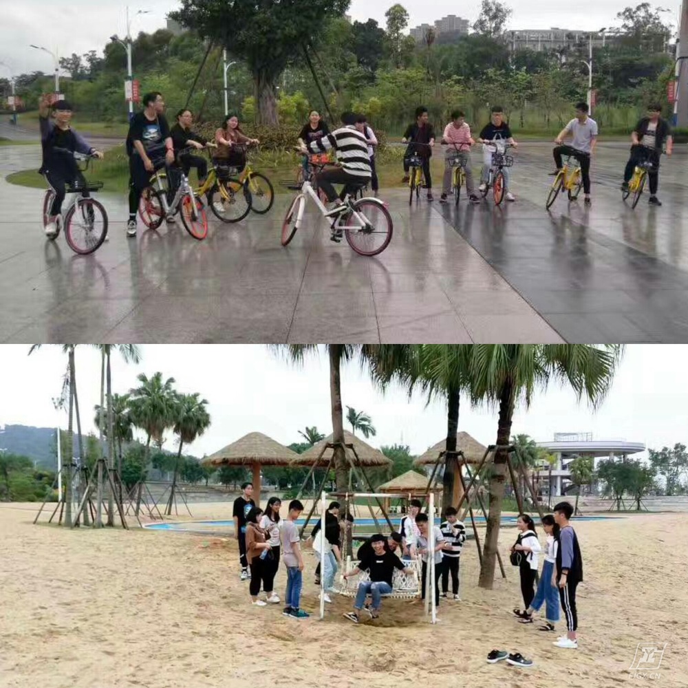 在六月份,老师组织了一次去农大沙滩游玩活动,我们以宿舍为单位骑车比赛看谁先到指定地点,活动中我们互帮互助团结友爱,无论是先到还是后到,我们都坚持着同一个想法,友谊第一,比赛第二,更何况我们是个集体!