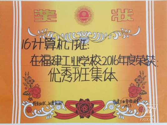 今年3月份, 学校在我们班级门口挂上了“职校英才”创新试点班的牌子;4月份,我们团支部被提名为“省直机关先进团支部”;5月份,我们16计(1)班被评为“福建工业学校2016年度优秀班集体”。