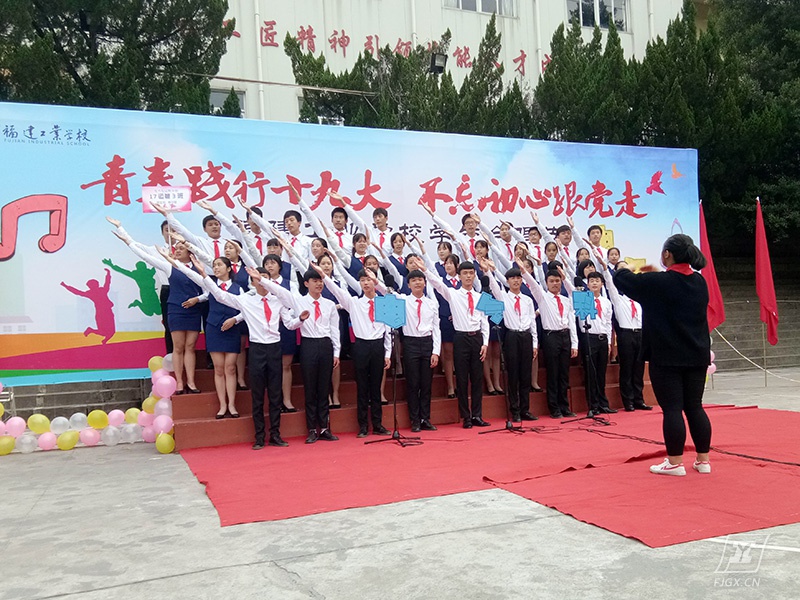 党的十九大的胜利闭幕,全国上下掀起了学习党的十九大的热潮。电气专业教学部团总支于2017年11月29日下午在我校篮球场举行了“青春践行党的十九大,不忘初心跟党走”主题大合唱比赛。本场大合唱比赛是第十届技能艺术节学生合唱节的一部分,本专业部共14个班级,每个班级唱响一首红歌。当各具特色的旋律飞扬在赛场时,学生们或激昂慷慨,或婉转动听的歌声也飘扬在赛场上空,给在场的观众带来了一场视听盛宴。