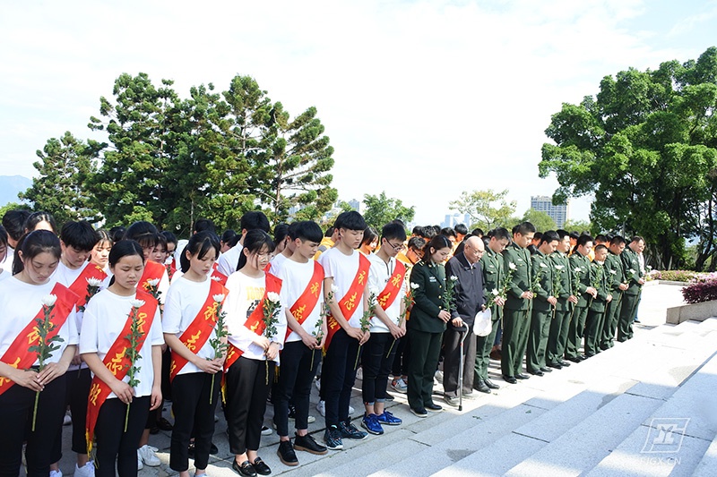 默哀的音乐响起,不少同学都眼眶湿润,为革命先烈不怕牺牲,英勇报国骄傲,为张福伟老首长的执着和善良感动。官兵们和同学们面对烈士碑深深鞠躬,向长眠在这里的18位烈士献上鲜花,表达无尽哀思。最后同学们列队到烈士馆瞻仰了烈士的音容,向烈士鞠躬致敬。