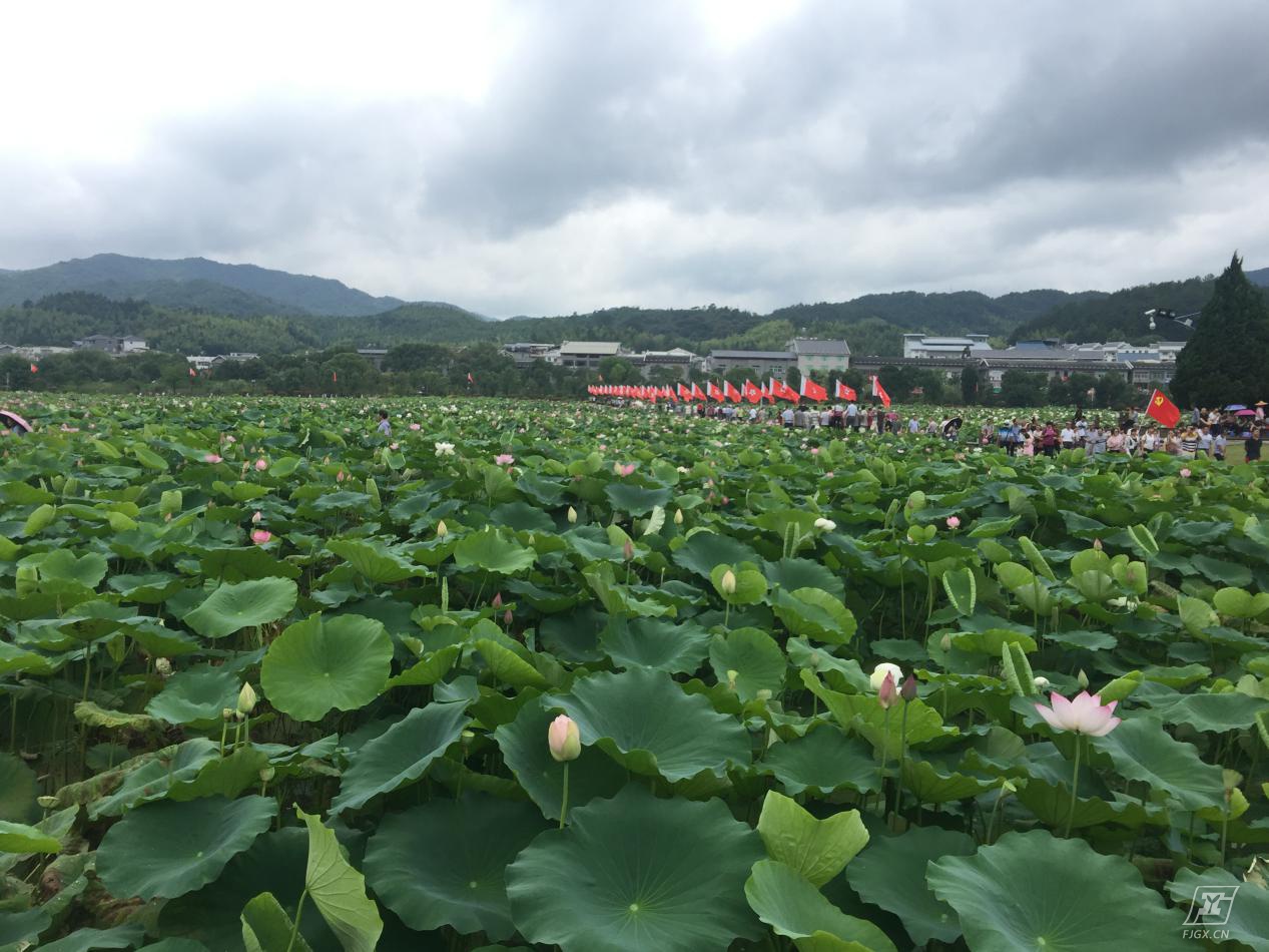 会议旧址前,亭亭玉立的荷花寓意着经过艰苦卓绝的奋斗而来之不易的幸福美好生活。
