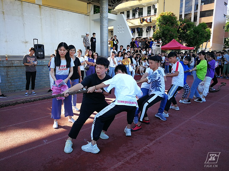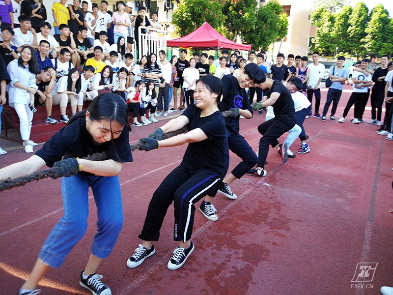 为了加强经贸专业教学部各个班级的交流,促进同学之间的友好相处,增强学生体育锻炼的意识与同学们的团队协作意识,经贸专业教学部团总支于2018年9月19日在田径场举行拔河比赛预赛。