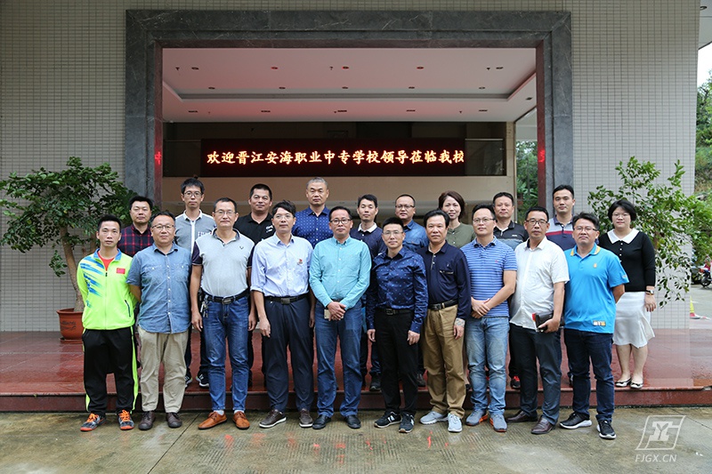 2018年10月11日,晋江安海职业中专学校李克勤校长、桂伟伦副校长等领导老师一行13人莅临我校参观调研。我校林俊标校长、杨尊东副校长、校办蔡杜娟主任陪同参观。