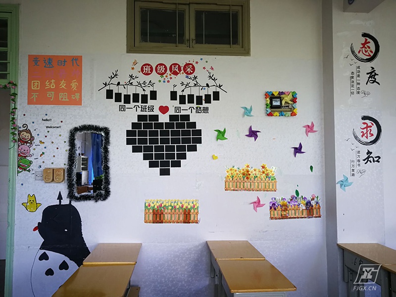 老师们先来到班级开始评比教室,每一面班级文化墙都熠熠生辉、朝气蓬勃,展示了班级的个性化设计,每个班级的风格都各不相同,每一个细小的装扮都代表了班级成员的用心,也说明了班级成员的团队精神和面对生活积极向上的生活态度。