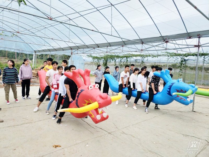 在参观完“奇怪的动物”后进行了上午的最后一个项目“划龙舟”,这个龙舟可不是在水划,而是靠四个人的腿来“划”,这场考验团队协作的比赛大家都不分上下,在关键的加时赛里辉煌队因忘记掉头痛失一分,比分再次拉平。
